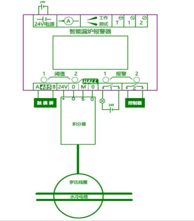 Rogowski coil 差動(dòng)式智能漏爐報(bào)警系統(tǒng): 由于羅氏線圈的諸多優(yōu)點(diǎn),可以解決 很多傳統(tǒng) CT 無(wú)法解決的問(wèn)題,適用于 高功率負(fù)載分析,脈沖式電流監(jiān)測(cè)。漏爐 報(bào)警系統(tǒng)采用 DSP 實(shí)現(xiàn)漏電流系統(tǒng)的 全數(shù)字控制,可以通過(guò)觸摸屏/電位器靈 活設(shè)定保護(hù)閾值,通過(guò)套在水冷電纜上 的羅氏線圈,系統(tǒng)可實(shí)時(shí)監(jiān)測(cè)感應(yīng)器爐 體的漏電流大小,可記錄保護(hù)時(shí)刻的漏 電流大小。 友好的人機(jī)界面,可實(shí)時(shí)顯 示運(yùn)行數(shù)據(jù)、設(shè)置的保護(hù)參數(shù)。具有遠(yuǎn) 程通信接口, 可實(shí)時(shí)上傳數(shù)據(jù)到觸摸屏, 可靈活設(shè)置保護(hù)閾值,實(shí)時(shí)顯示漏電流。